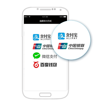 7天收银台,为iOS/Android原生/H5 App提供支付解决方案:支持微信支付、支付宝支付、银联手机支付、百度钱包等。